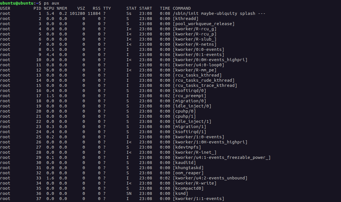 Caso você esteja utilizando um sistema GNU/Linux, você pode visualizar os processos que estão sendo executados neste exato momento, utilizando o comando ps aux: