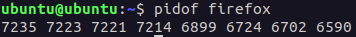 pidof <nome-do-processo>. A mérito de exemplo, o processo principal e os subprocessos do firefox: